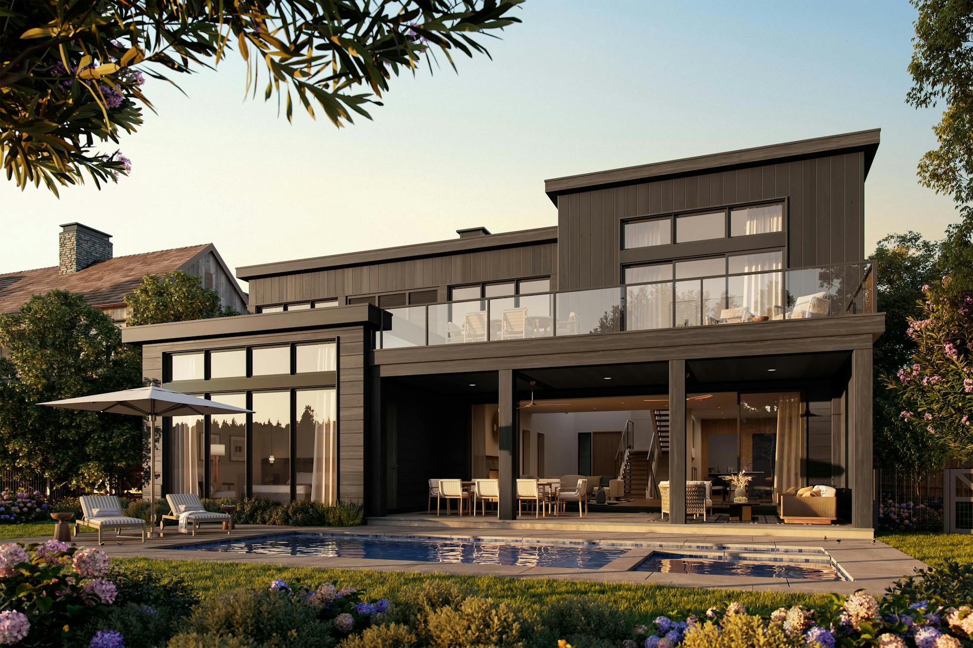 General disclaimer: Conceptual renderings and floorplans and subject to change. Home exteriors are pre-selected by our renowned architects to enrich the neighborhood experience. Buyers should rely on their own finish selections, plans, specifications, landscape, entry gates, and other information in their contract documents. All Village homes do not come included with a pool option, but are upgrade options paid by buyer upon selection. Pool deck size, location, and cost impacts will be determined on a lot-by-lot basis. All homes have Photovoltaic (PV) Roof Panels – minimal amount to meet NYS Energy Code.